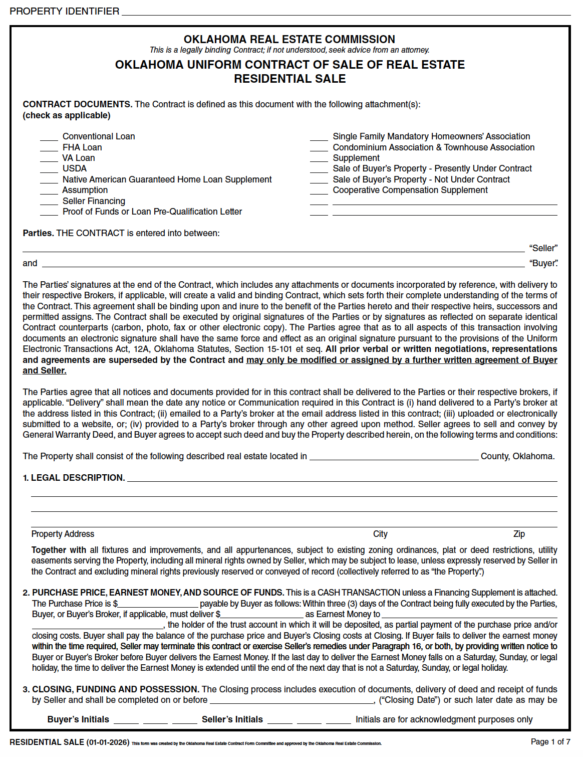 Understand every paragraph of the standard Oklahoma Real Estate Commission residential purchase agreement to navigate potential pitfalls effectively.